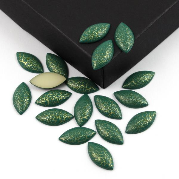 OpisMałe, lekkie kaboszony w kształcie wrzeciona - markizy do naklejania i obszywania. Oryginalny efekt crackle ze złotymi spękaniami. Polecamy na kolczyki - kaboszony są bardzo lekkie.