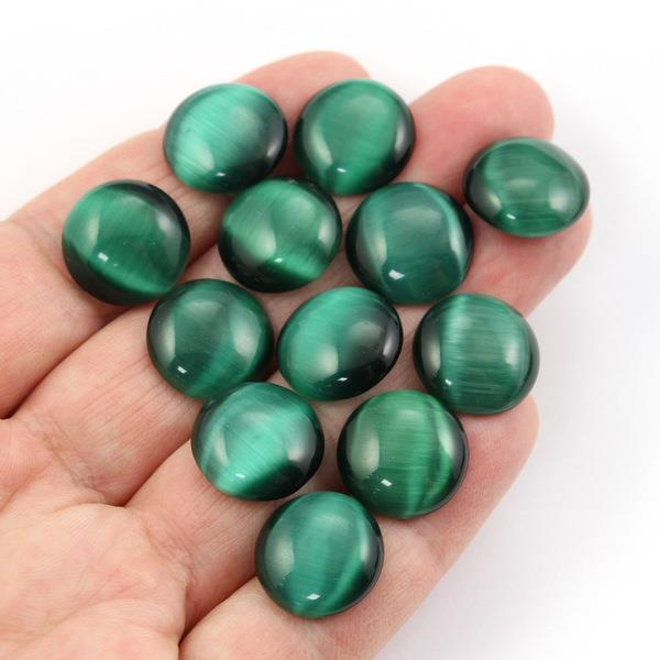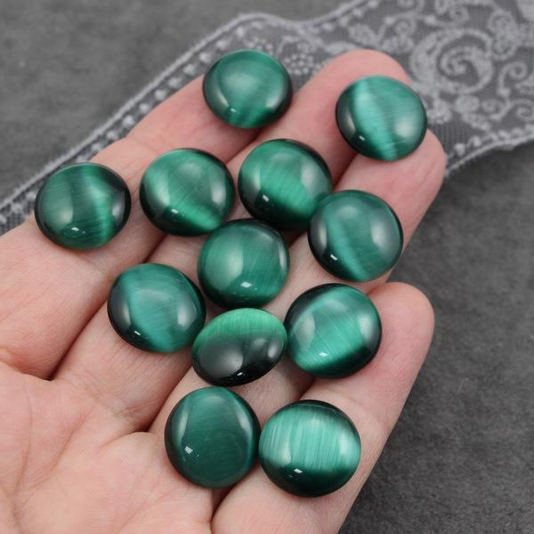 Kaboszon kocie oko okrągły szmaragdowy zielony 16mm