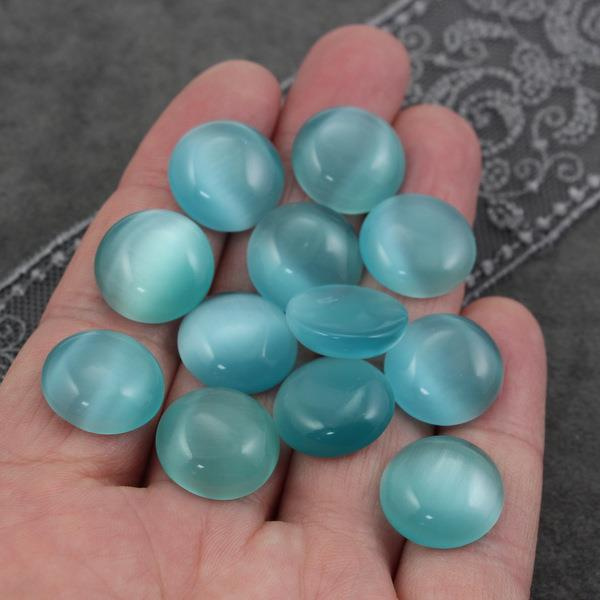 OpisKaboszon okrągły / moneta kociego oka w kolorze *zielono-niebieskim / aqua.*