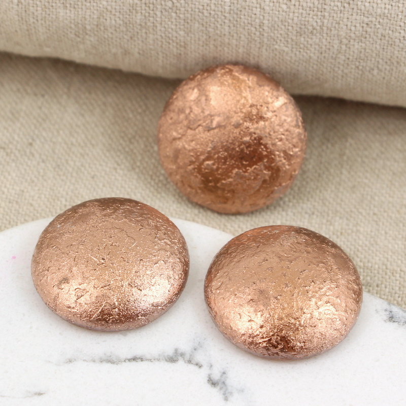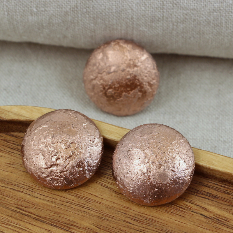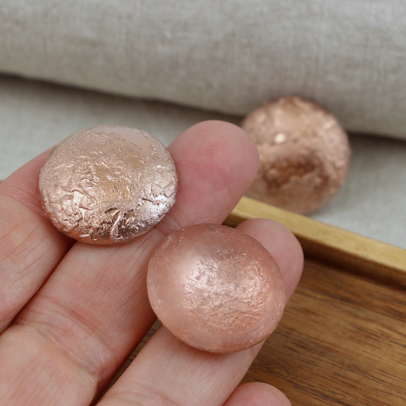 Szklane kaboszony - okrągłe monety w kolorze różowym złotym, powierzchnia trawiona.