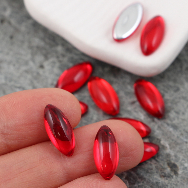 Kaboszon szklany Siam Ruby - Silver Foiled wrzeciono 15x7mm