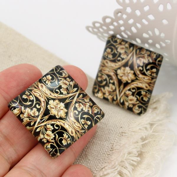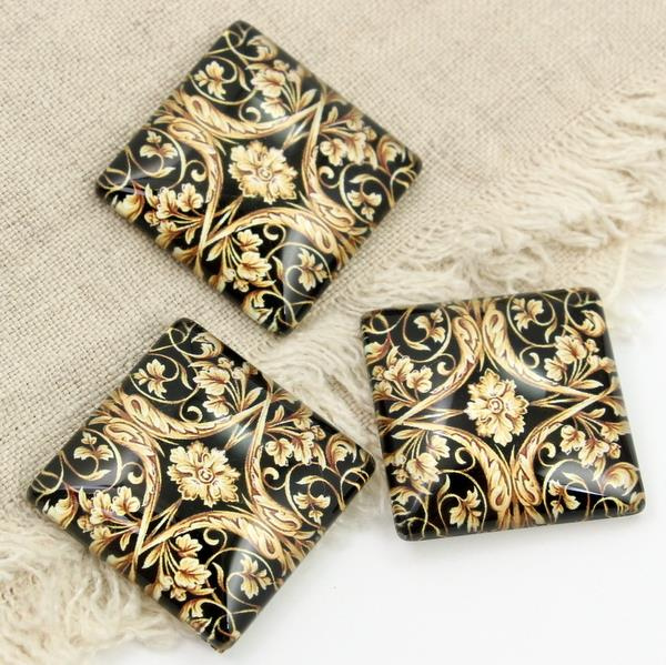 Kaboszon szklany z grafiką baroque kwadrat 30mm