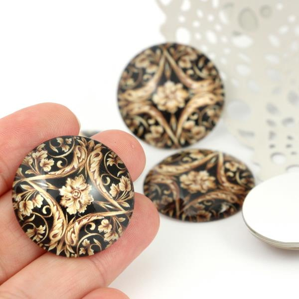 Kaboszon szklany z grafiką baroque moneta 30mm