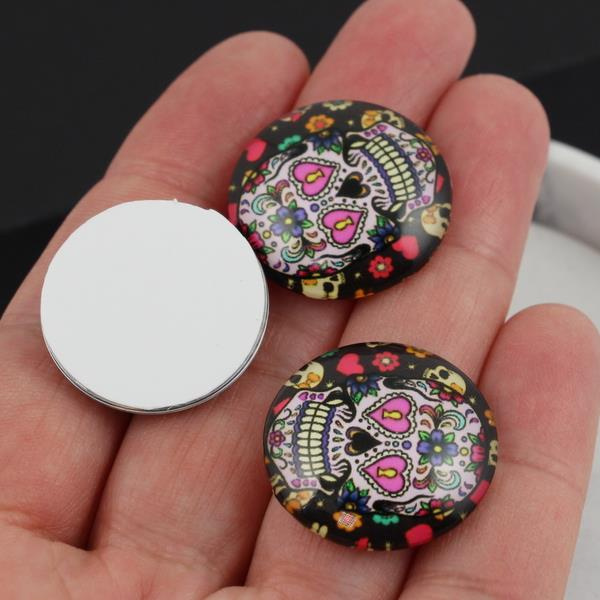 Kaboszon szklany z grafiką moneta czaszka 25mm