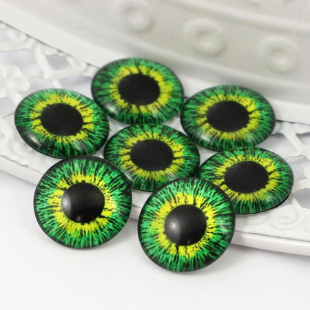 OpisKaboszon szklany w kształcie krążka podklejony oryginalną grafiką. Jednostronnie wypukły, na spodzie płaski.