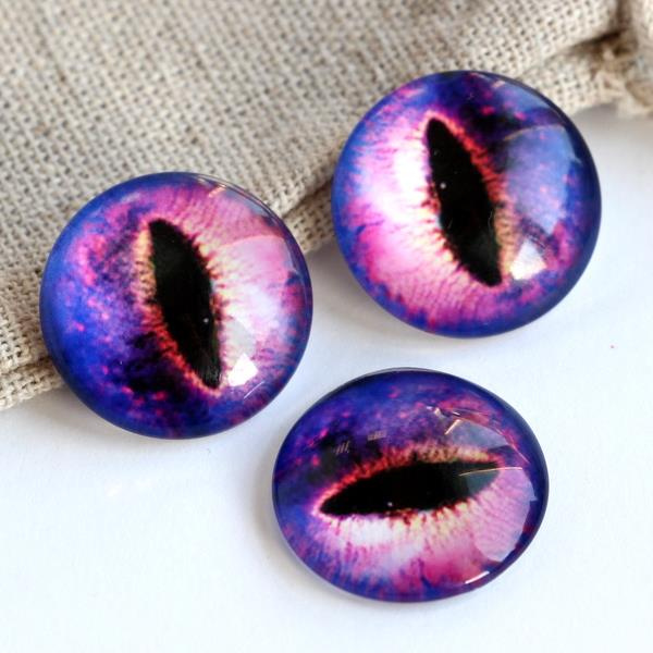 Kaboszon szklany z grafiką oko moneta fioletowa 20mm