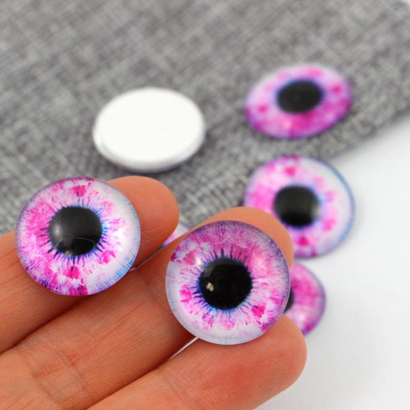 Kaboszon szklany z grafiką oko moneta fioletowa 20mm