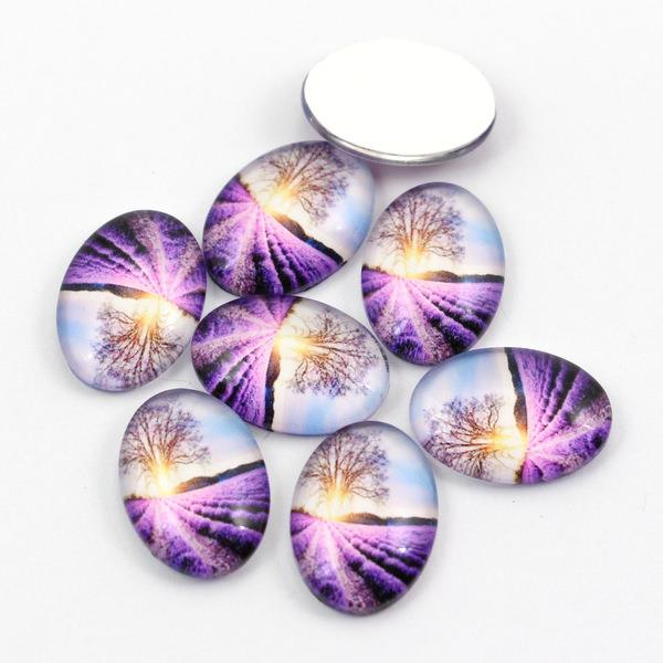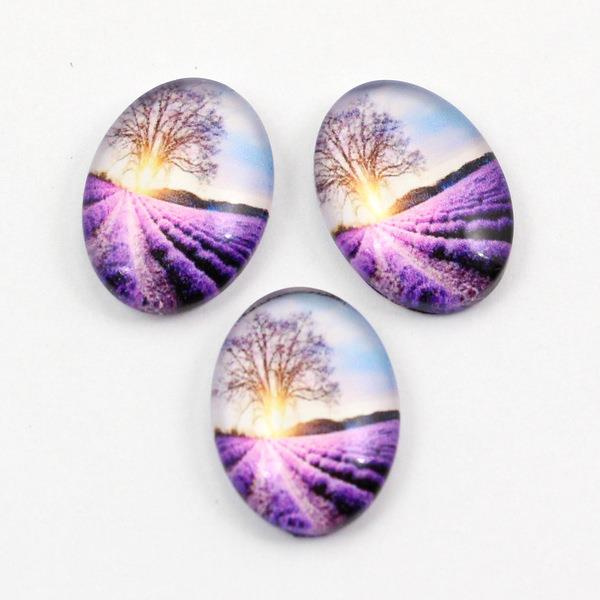 Kaboszon szklany z grafiką owal krajobraz 18x13mm