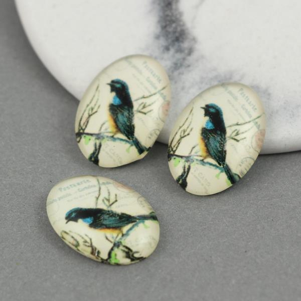 Kaboszon szklany z grafiką owal motyw ptaszka 18x13mm