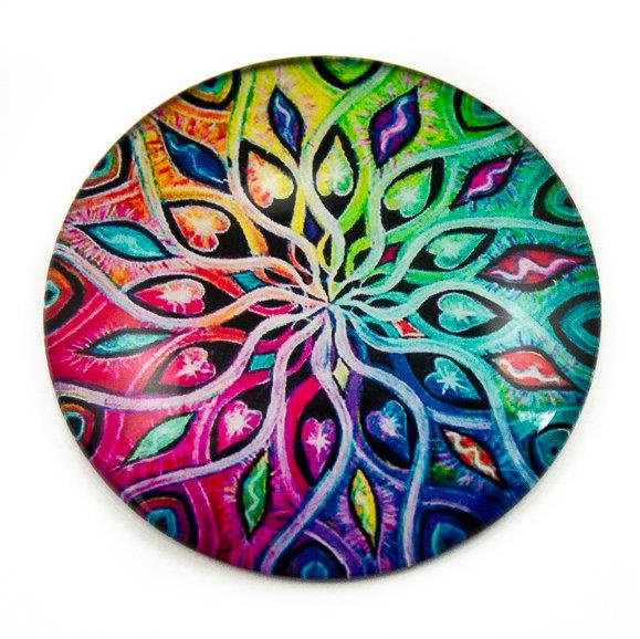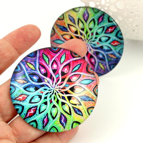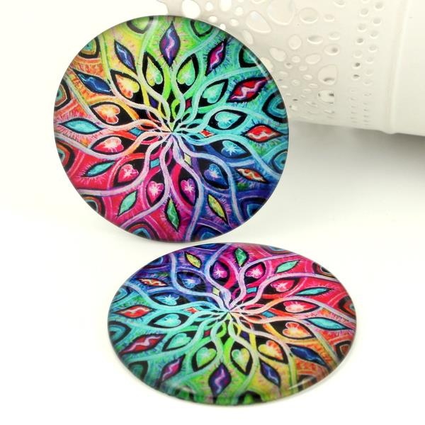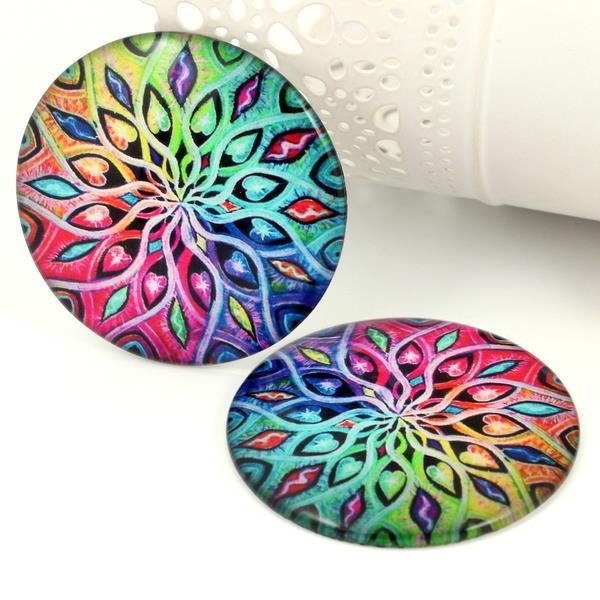 Kaboszon szklany z grafiką tęczowy kalejdoskop moneta 58mm