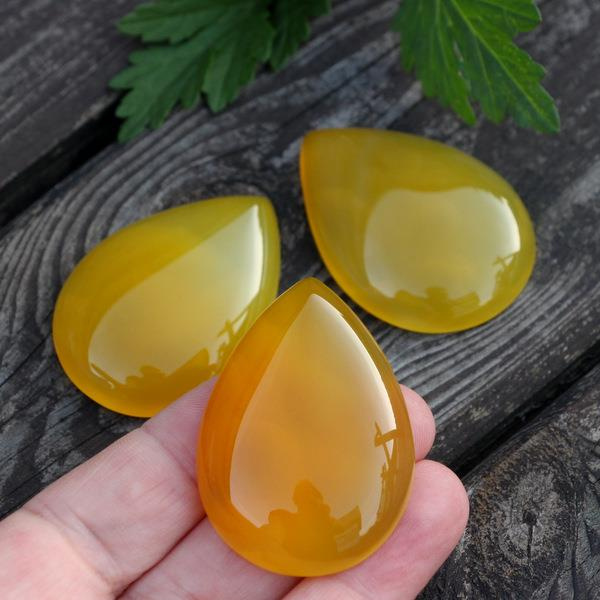 Kaboszon agat brazylijski łezka żółta 40x30mm
