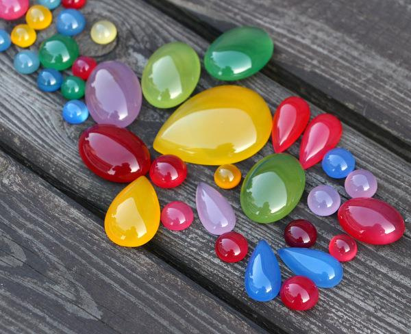 OpisZnakomitej jakości *olbrzymie* kaboszony agatu brazylijskiego o niezwykle gładkiej, błyszczącej powierzchni. Kaboszony w kształcie łezki.