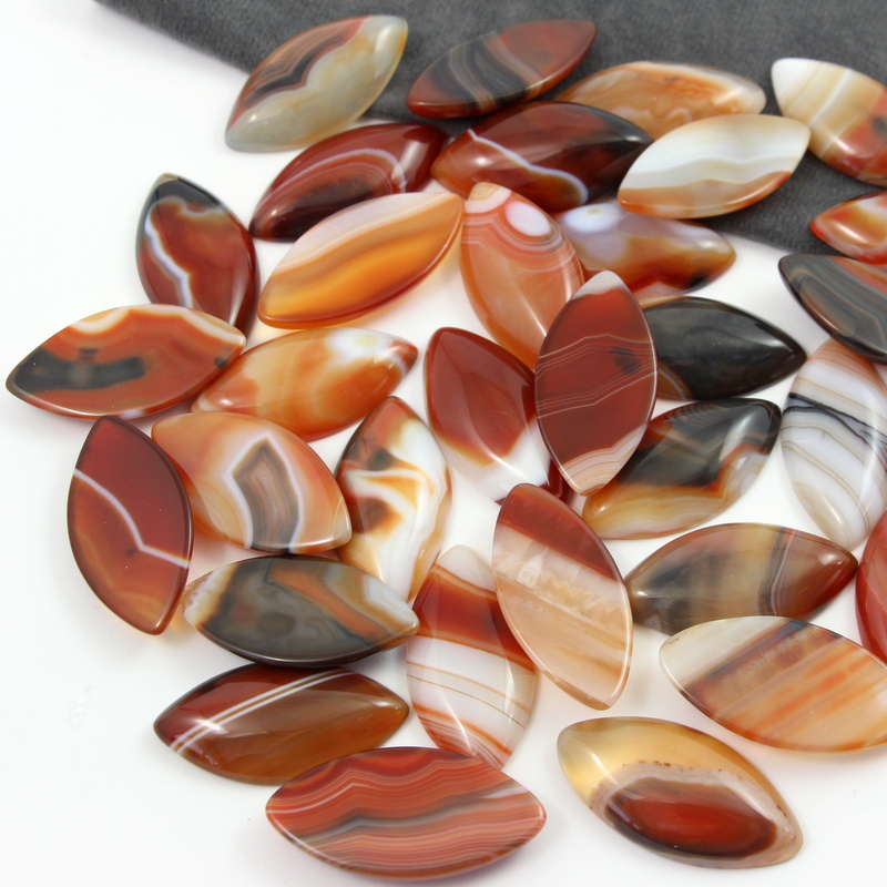 OpisDuże kaboszony / plastry agatu pasiastego. Każdy kamień ma efektowny wzór.