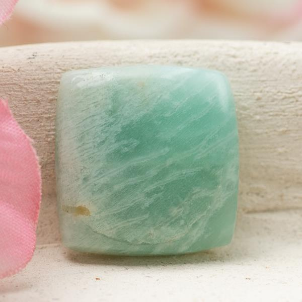 OpisKaboszon naturalnego amazonitu, spód płaski.