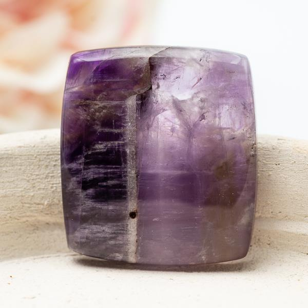 Ametyst w postaci kaboszonu, spód płaski. Wymiar: 34x30x7mm