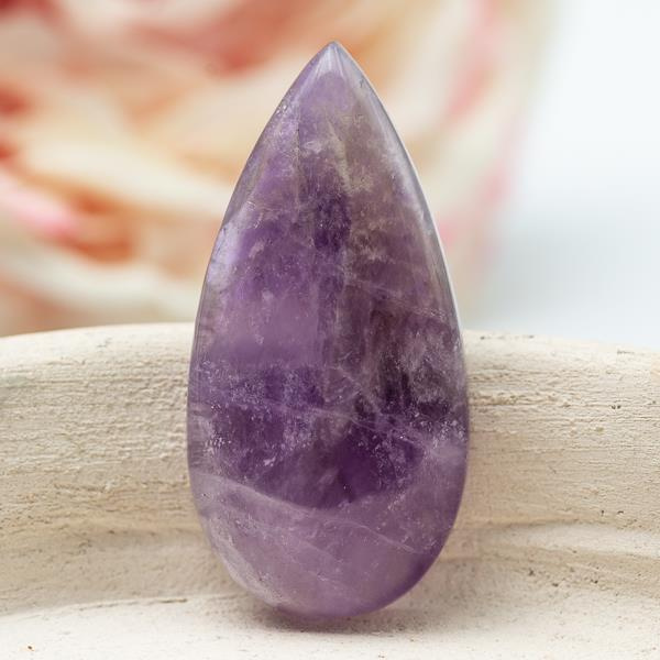 OpisAmetyst w postaci kaboszonu, spód płaski.