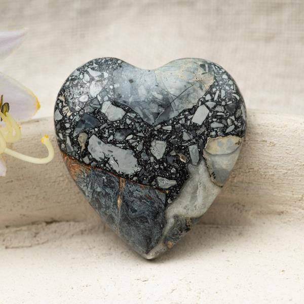 OpisKaboszon naturalnego jaspisu maligano w kształcie serca.