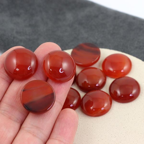 Okrągłe, gładkie kaboszony agatu karneolowego. Polecamy do haftu sutasz, haftu koralikowego i beadingu - obszywania koralikami.