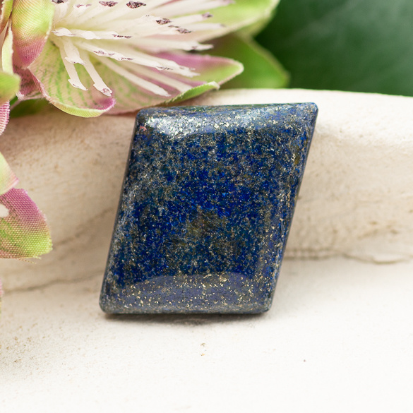 Kaboszon naturalnego lapis lazuli. Spód płaski, obustronnie polerowany. Wymiar: 20x17x6mm.
