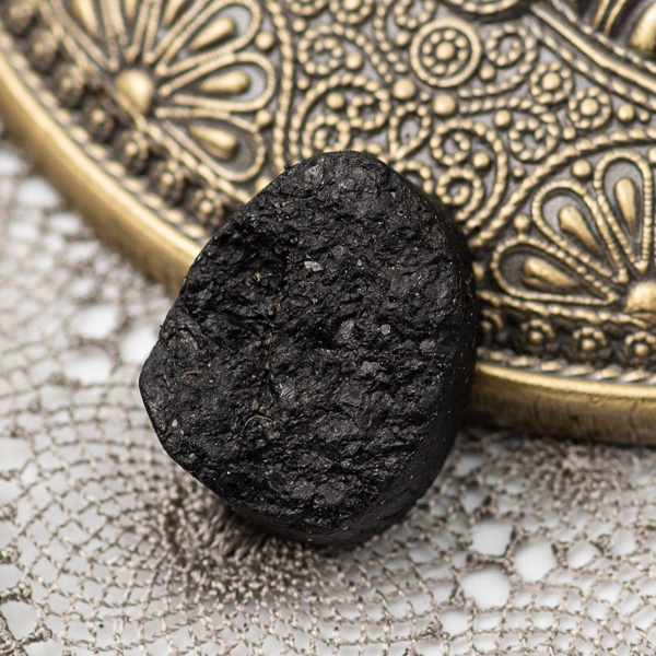 Kaboszon naturalnego czarnego turmalinu. Druza, spód płaski. Wymiar: 26x16x8mm.