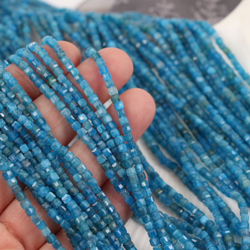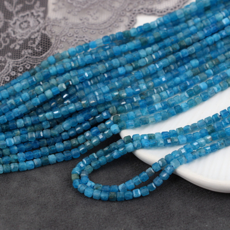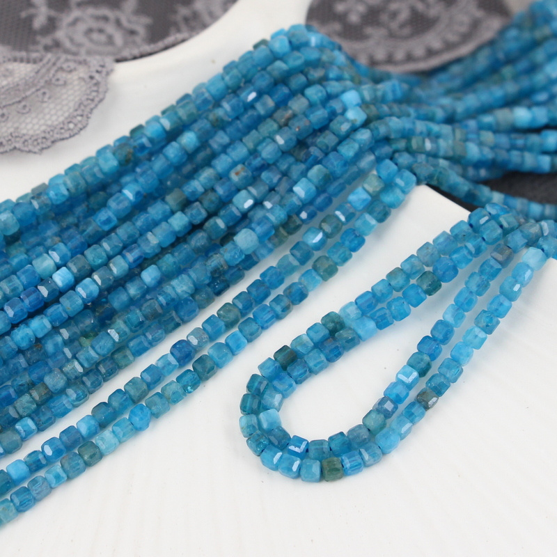 Apatyt niebieski kostka fasetowana 3mm [sznur 39cm]