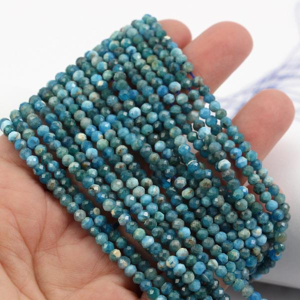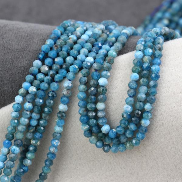 OpisDrobne oponki apatytu w morskim odcieniu niebieskiego.