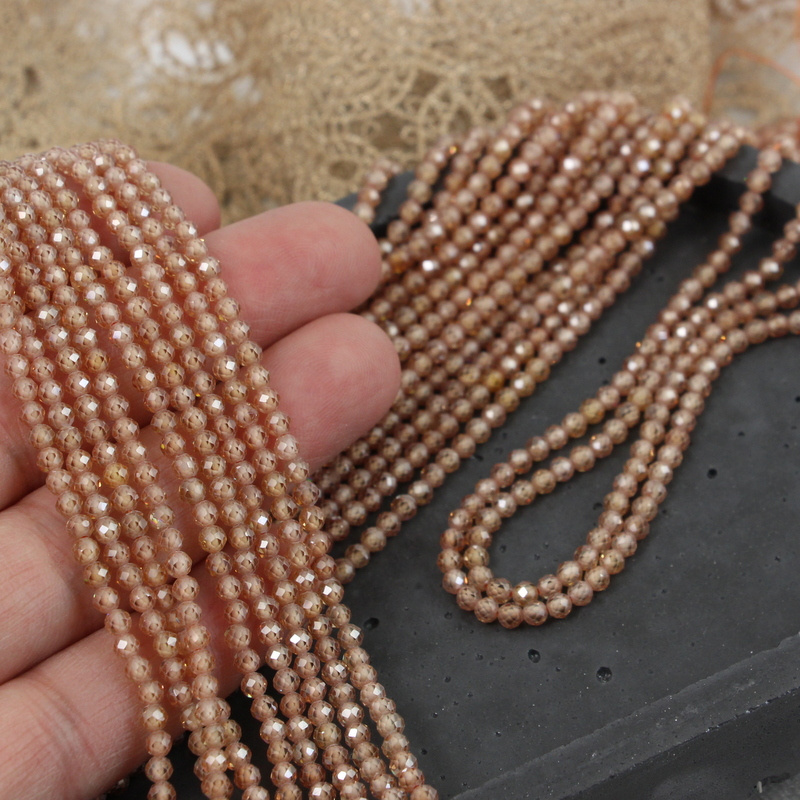 Cyrkonia kula fasetowana beżowa 3mm [sznur 37cm]