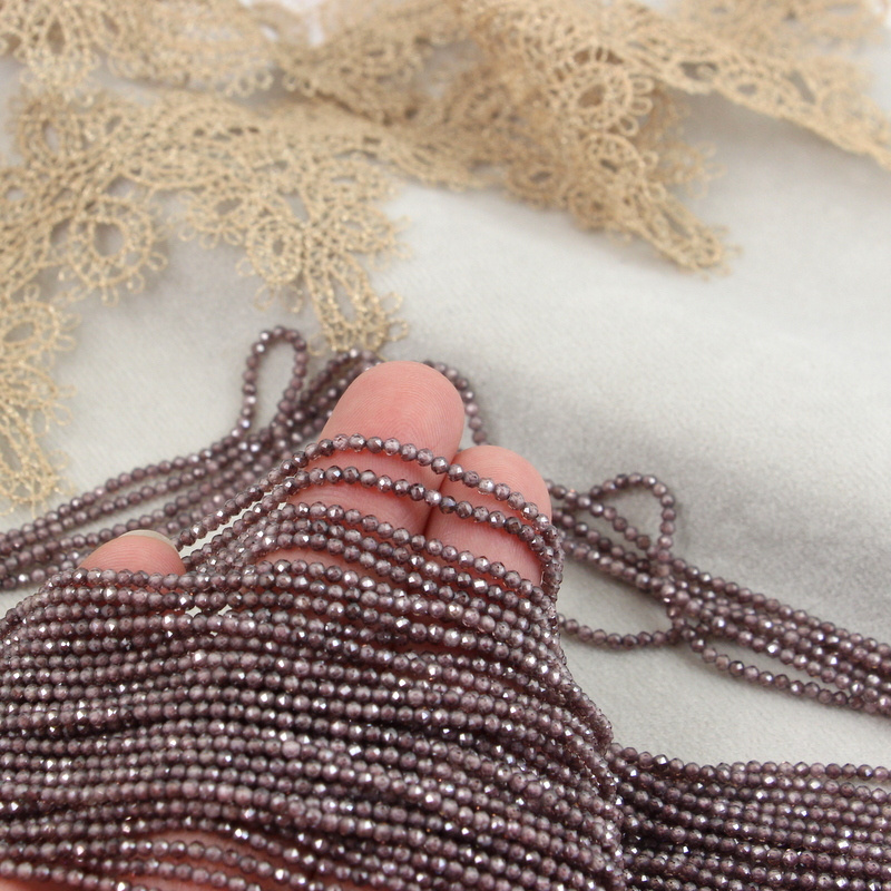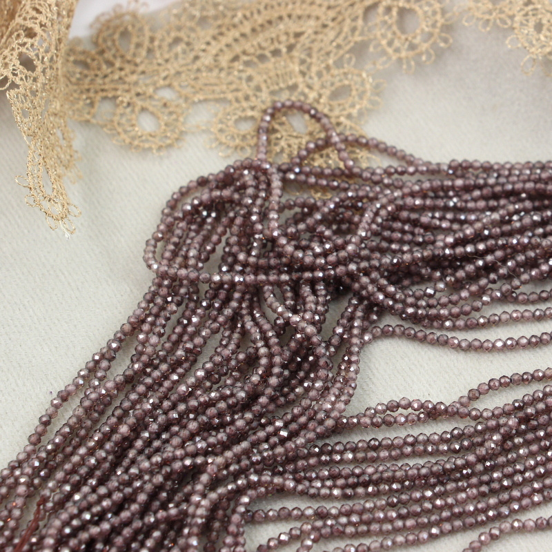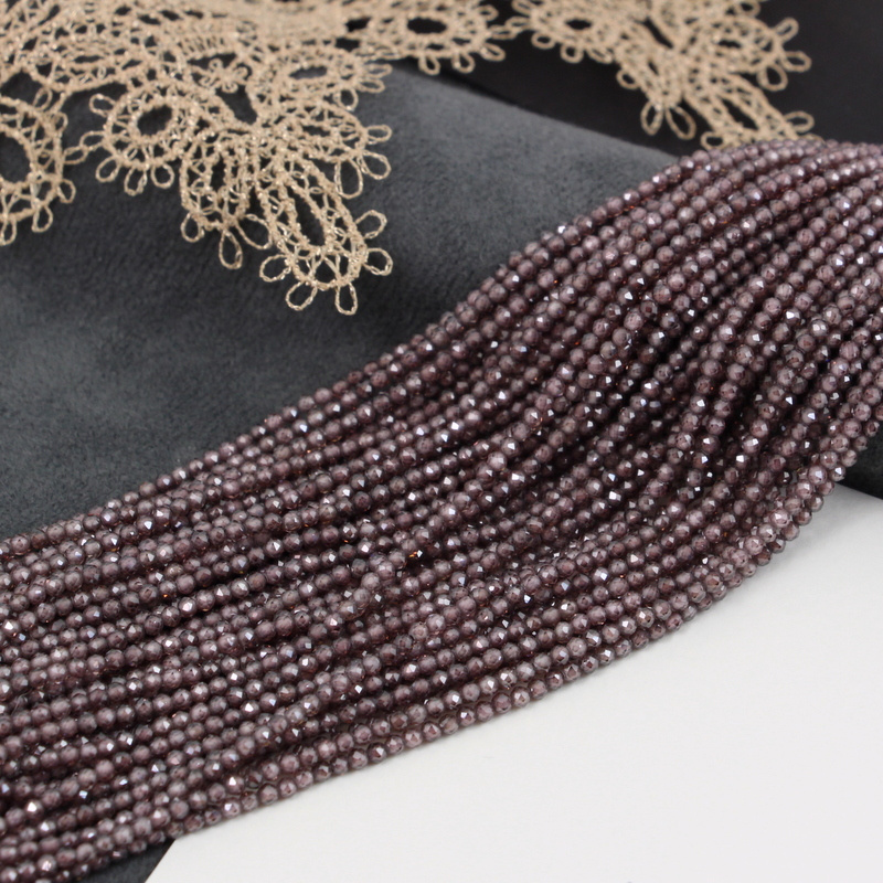 Cyrkonia kula fasetowana brązowa 2mm [sznur 38cm]