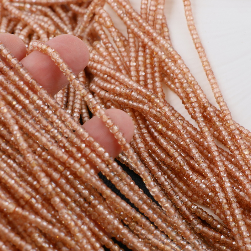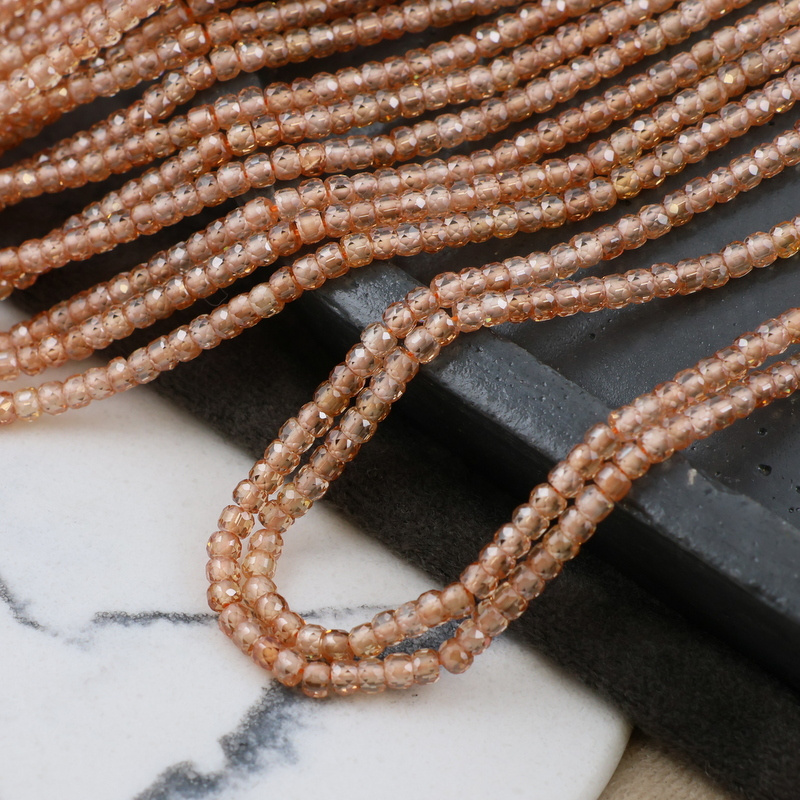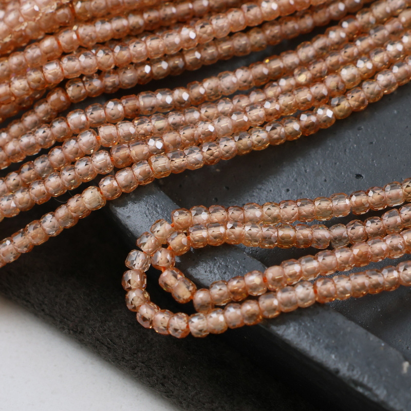 Sznur szlifowanych oponek cyrkonii w szampańskim beżu.