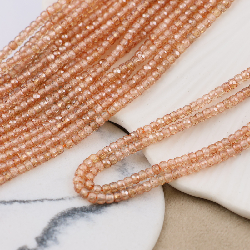 Cyrkonia oponka fasetowana beżowa 3x2mm [sznur 37cm]