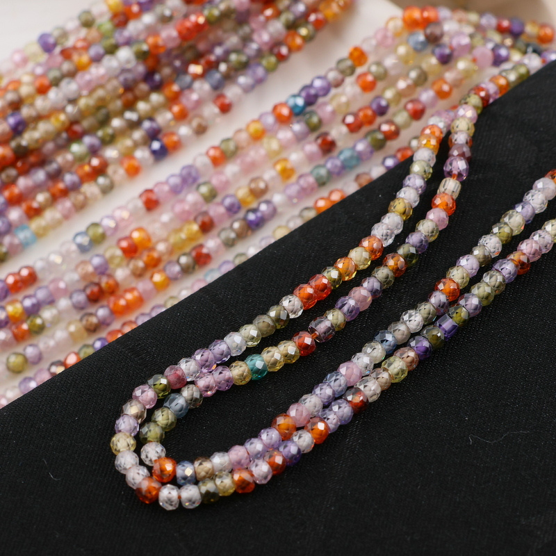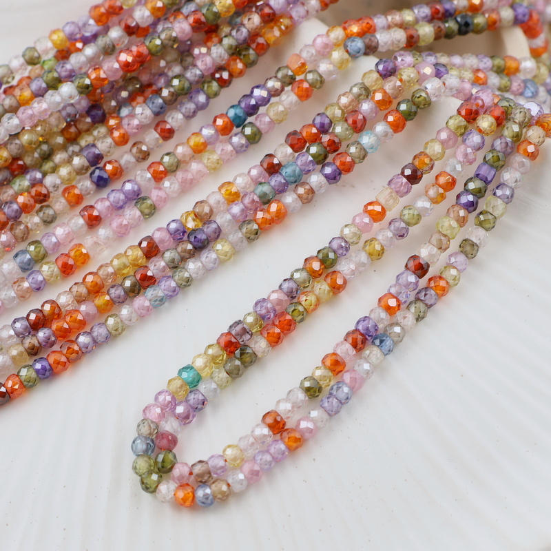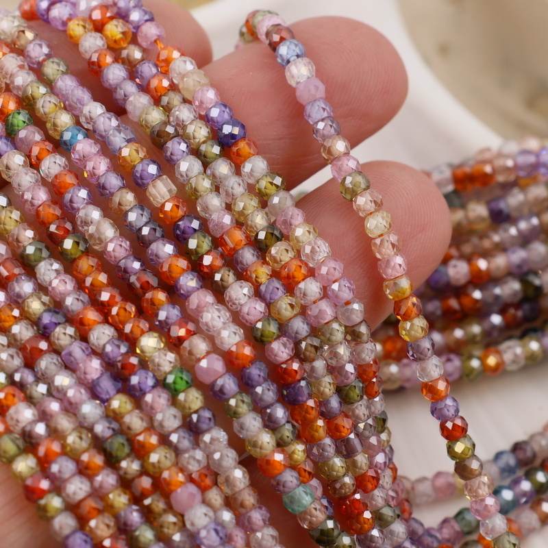Sznur szlifowanych oponek cyrkonii w cukierkowych kolorach.
