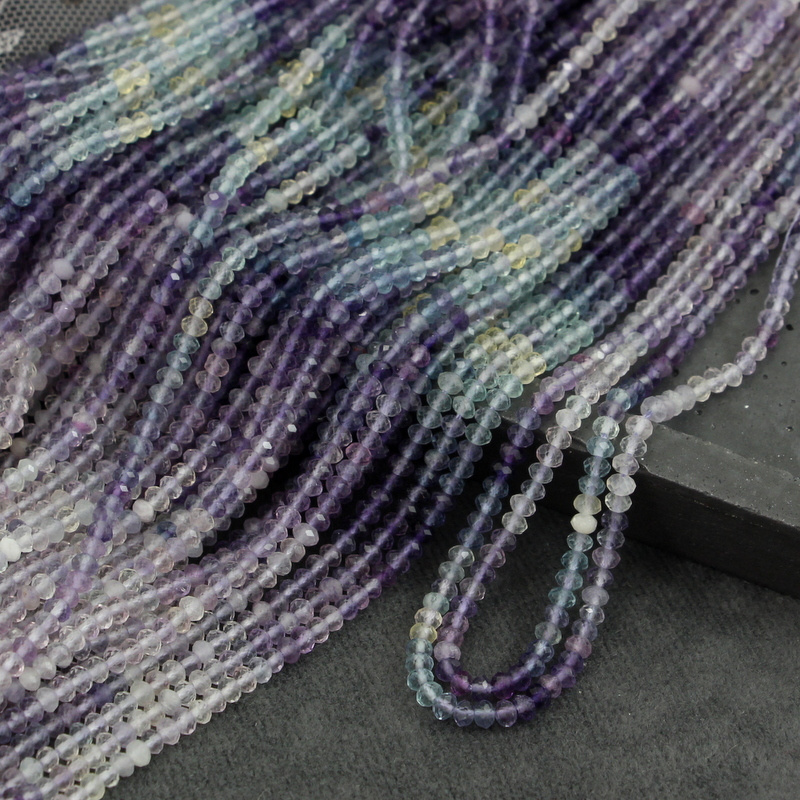 Fluoryt tęczowy oponka fasetowana 3x2mm [sznur 39cm]