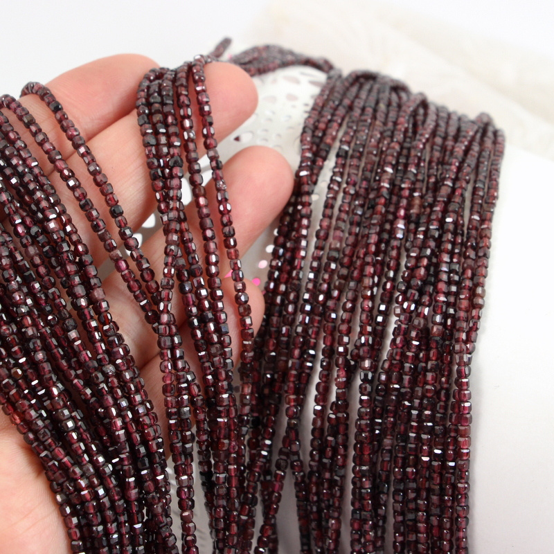 Granat kostka fasetowana 2mm [sznur 39cm]