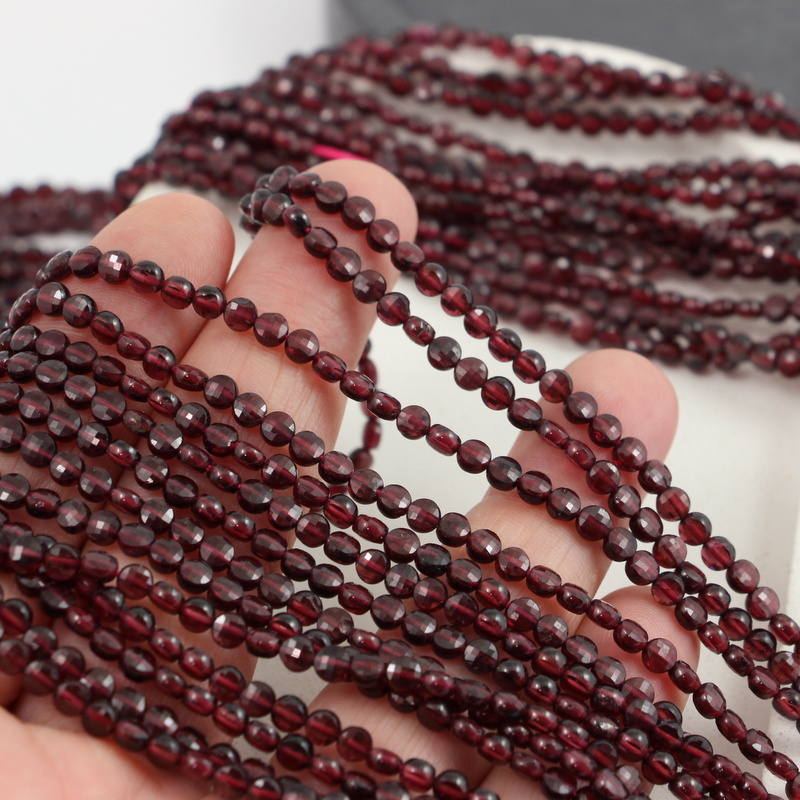 Małe monetki bordowego granatu, kamienie ładnie się błyszczą.