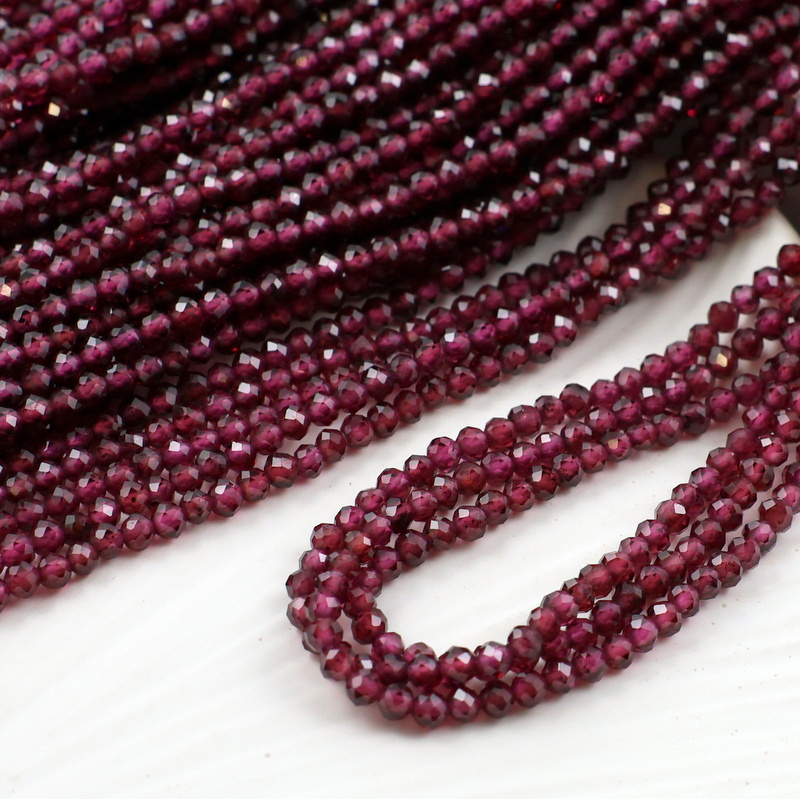 Granat purpurowy kula fasetowana 3mm [sznur 39cm]