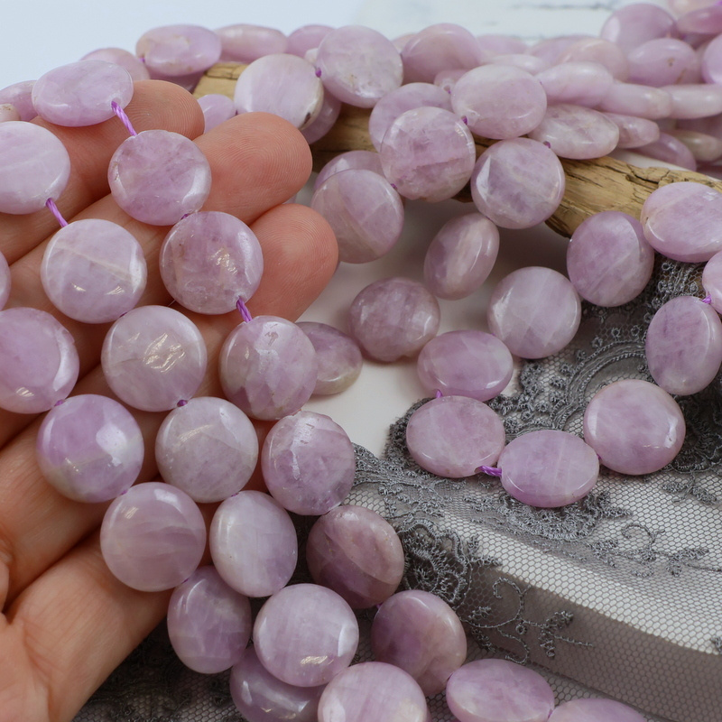 Gładkie monety pastelowego kunzytu w odcieniu liliowego różu.
