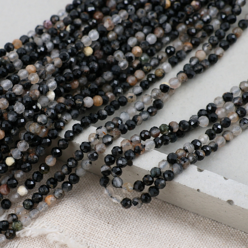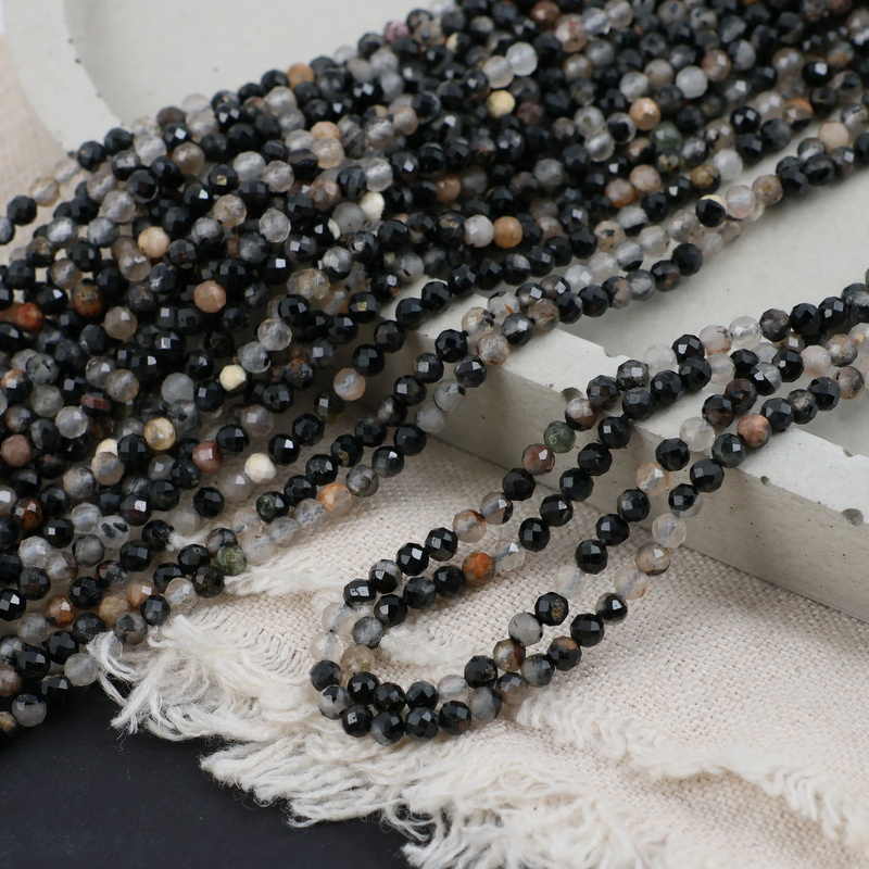 Małe, fasetowane kulki naturalnego kwarcu z włoskami rutylu.
