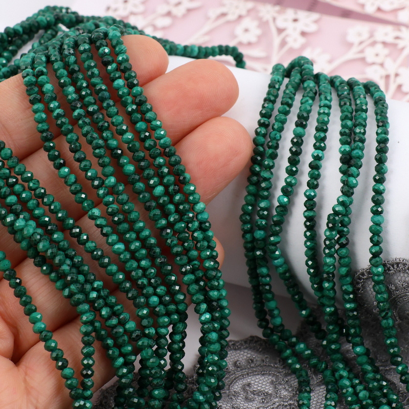 Malachit naturalny oponka fasetowana 3x2mm [sznur 39cm]