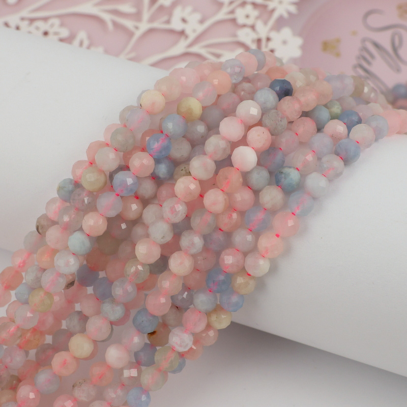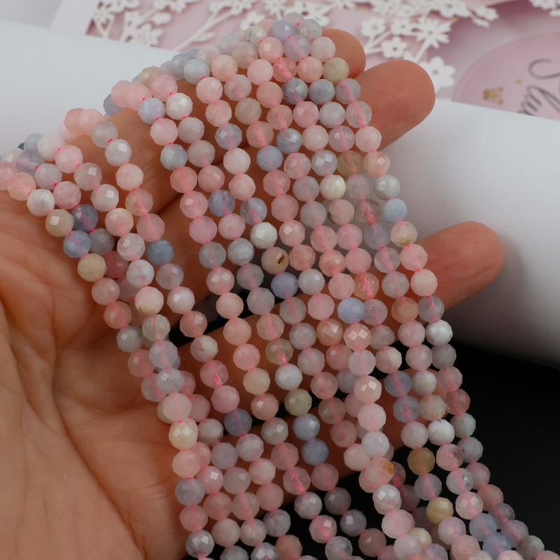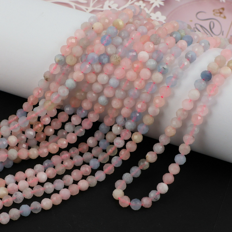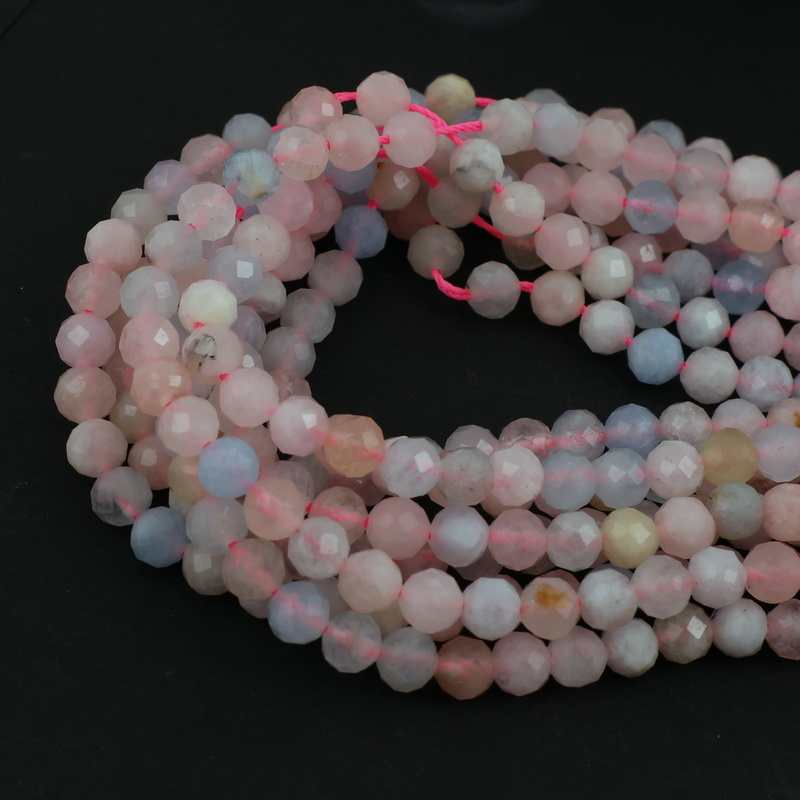 Pastelowe kule fasetowane naturalnego morganitu. Polecamy na bransoletki, naszyjniki.