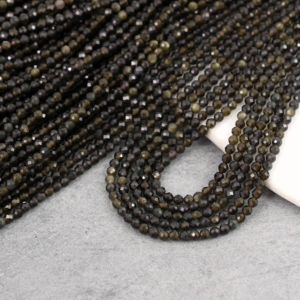 Obsydian złoty kula fasetowana 2mm [sznur 39cm]