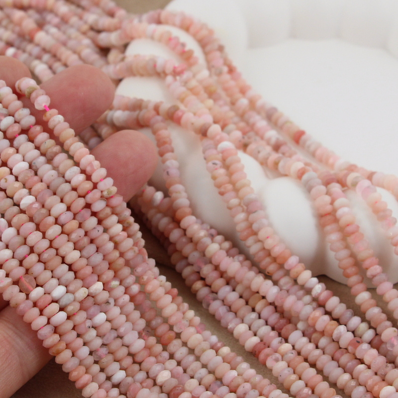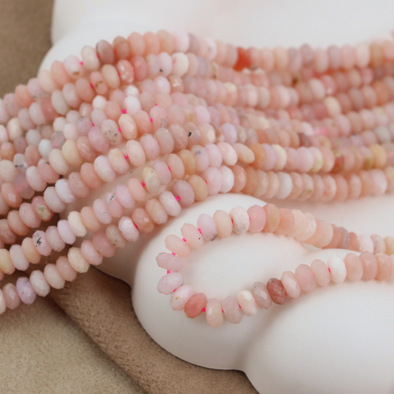 Fasetowane oponki różowego opalu, rozmiar 4,5x2,2mm.