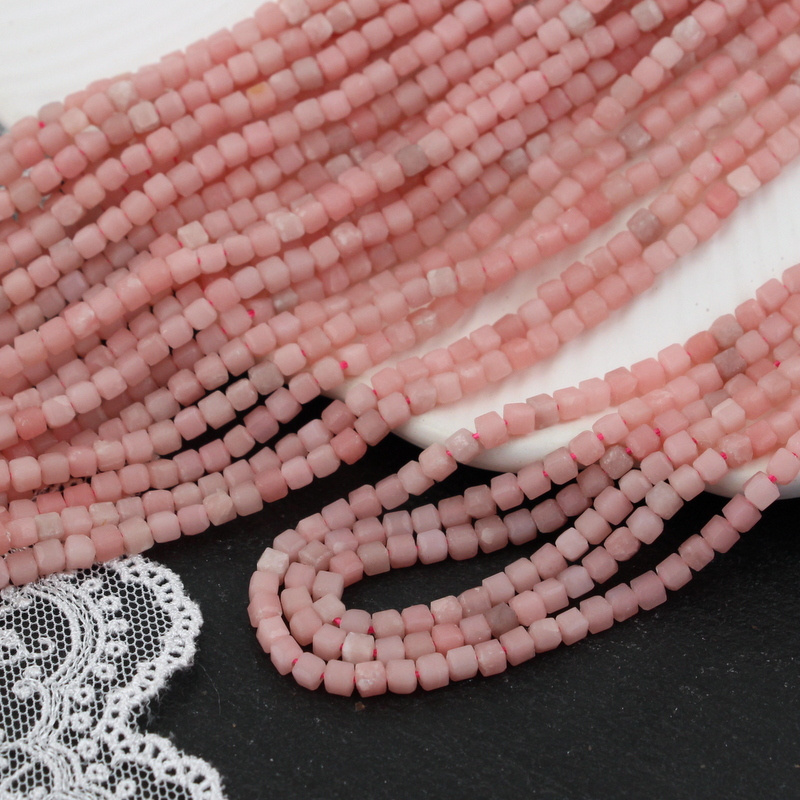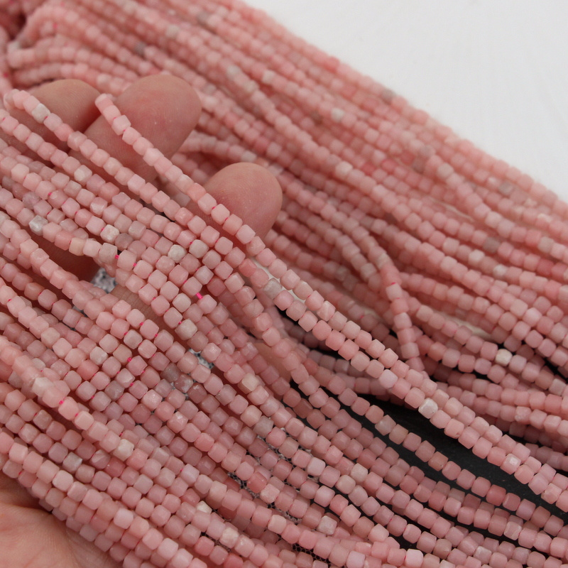 Opal różowy kostka fasetowana 3x3mm [sznur 39cm]