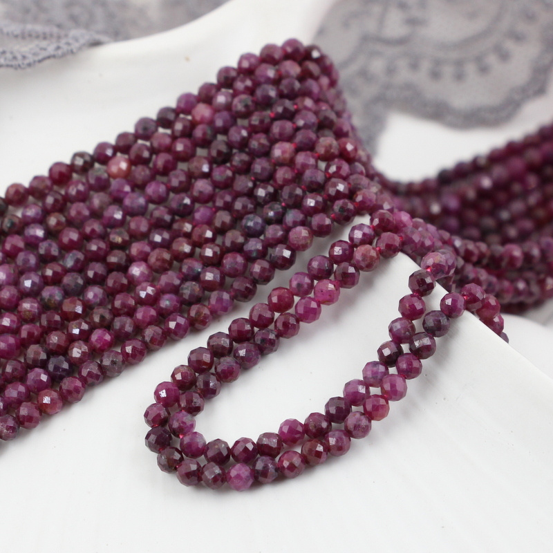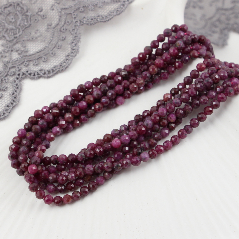 Rubin kula fasetowana 3mm [sznur 39cm]