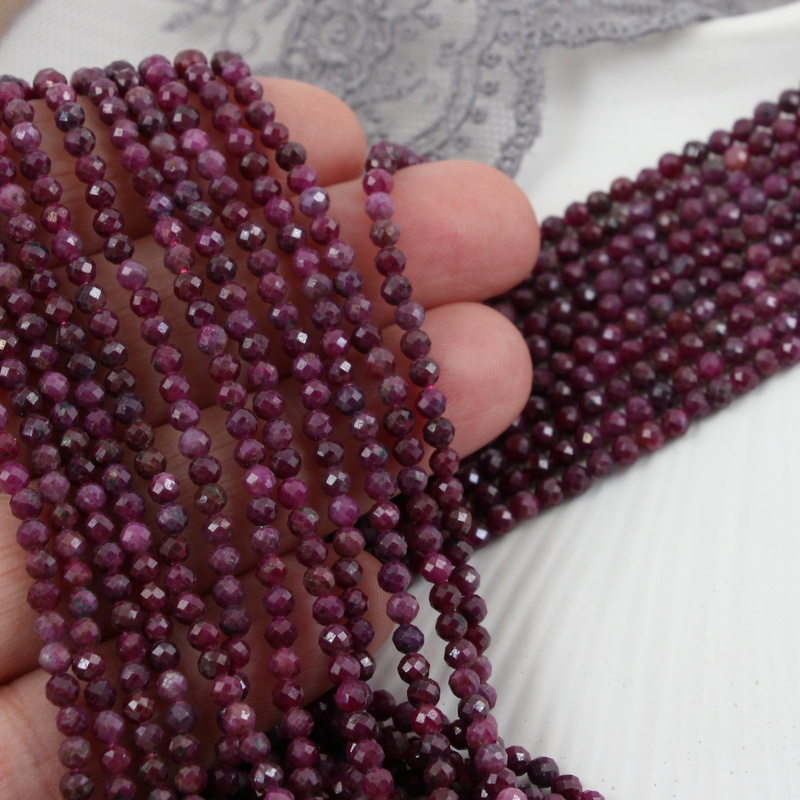 Szlifowane kulki naturalnego rubinu w ciemnym odcieniu.