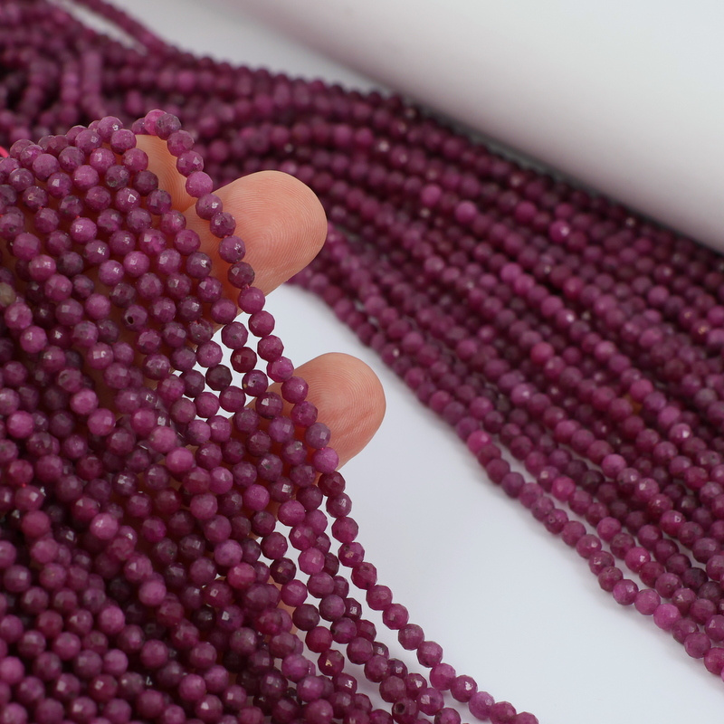 Szlifowane kulki naturalnego rubinu w ciemnym odcieniu.