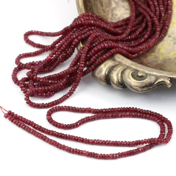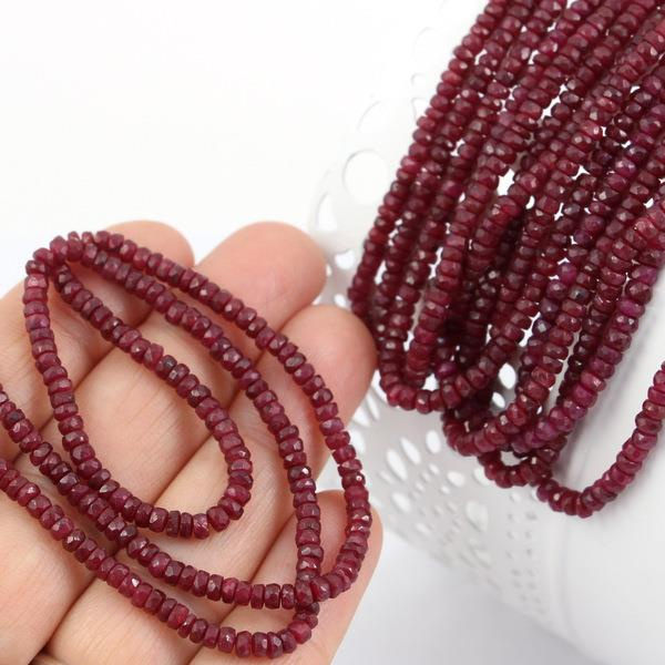 OpisDrobniutkie oponki fasetowanego rubinu (formowane bardziej w dysk niż oponkę). Polecamy na minimalistyczne bransoletki, naszyjniki. Ładnie będą się komponować z dodatkami złotymi lub oksydowanym srebrem. Oponki w miarę równe. Mocny, nasycony kolor.