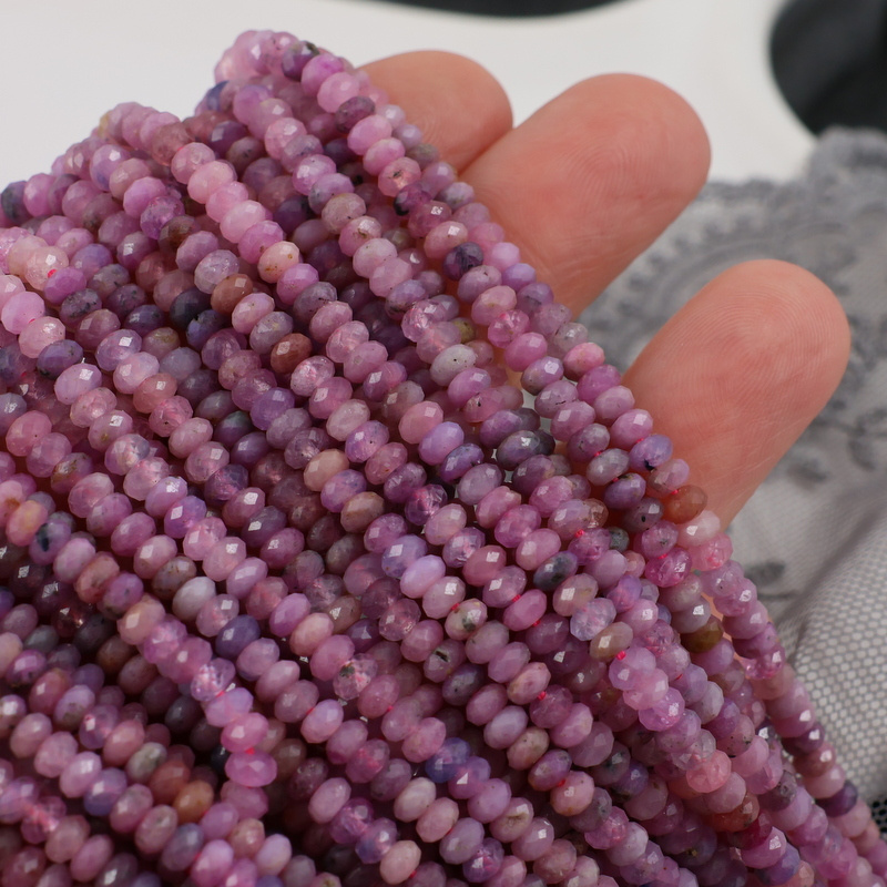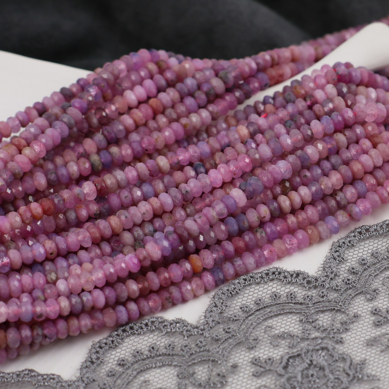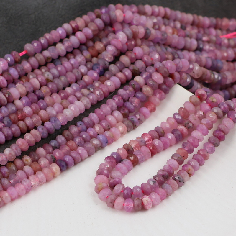 Sznur drobnych szlifowanych oponek naturalnego rubinu.