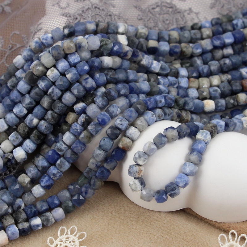 Sodalit kostka fasetowana 4mm [sznur 39cm]