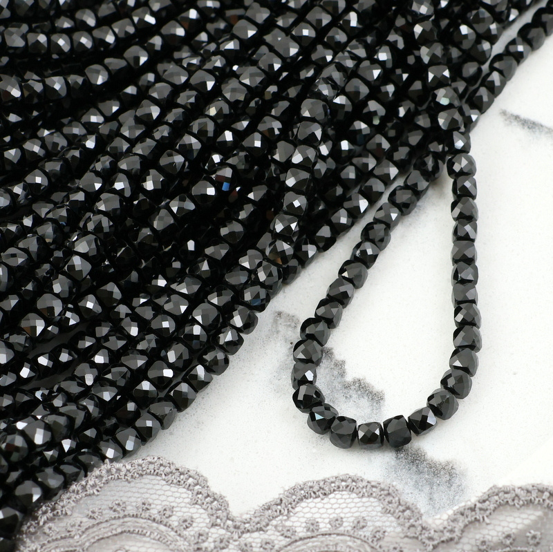 Spinel czarny kostka fasetowana 4mm [sznur 38cm]