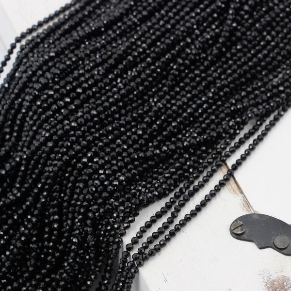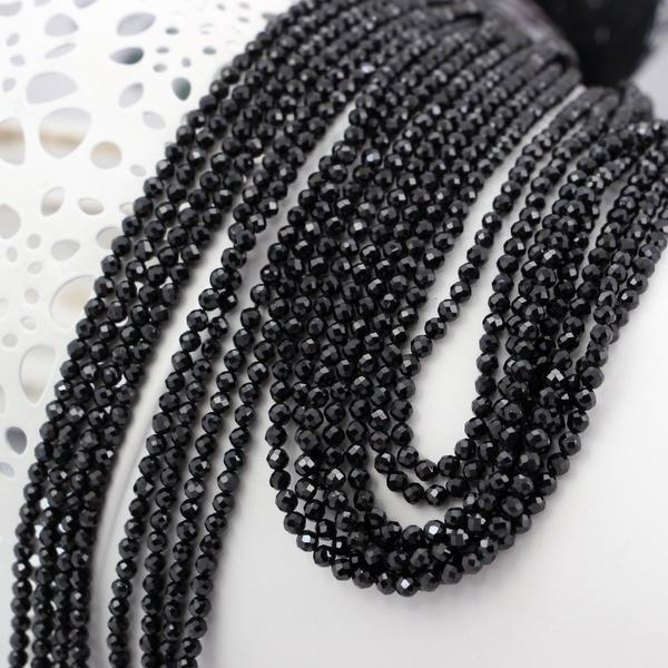 Spinel czarny kula fasetowana 2,5mm [sznur 39cm]